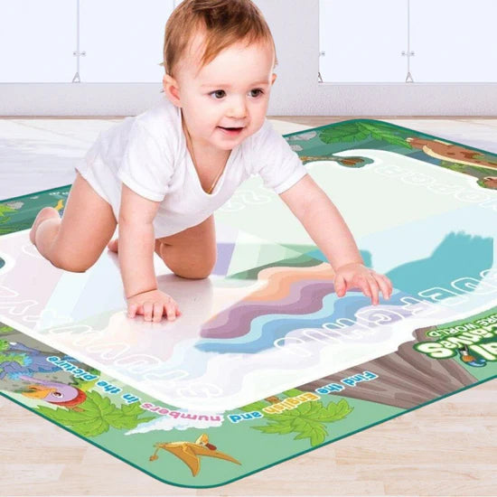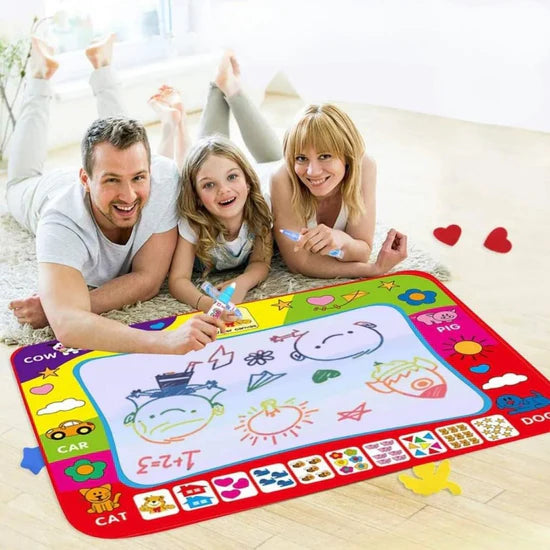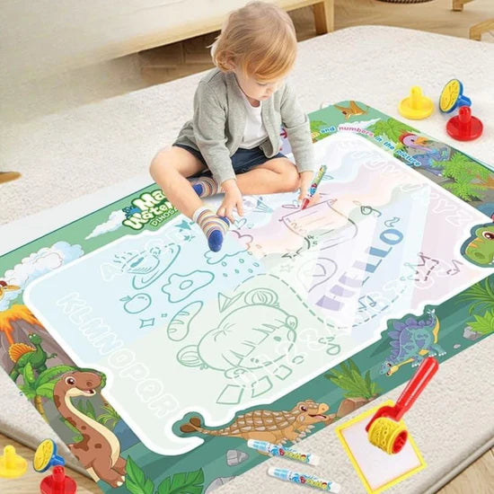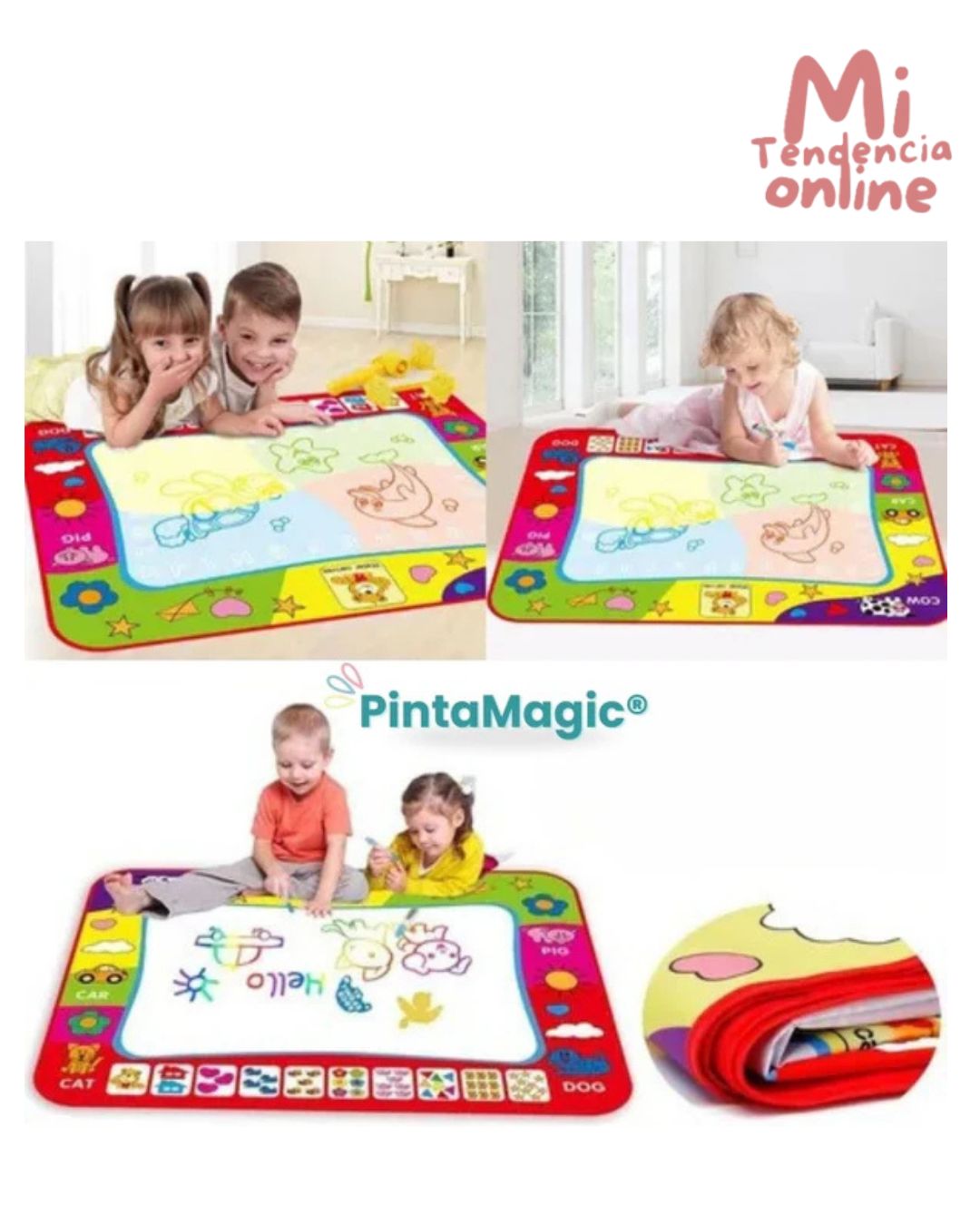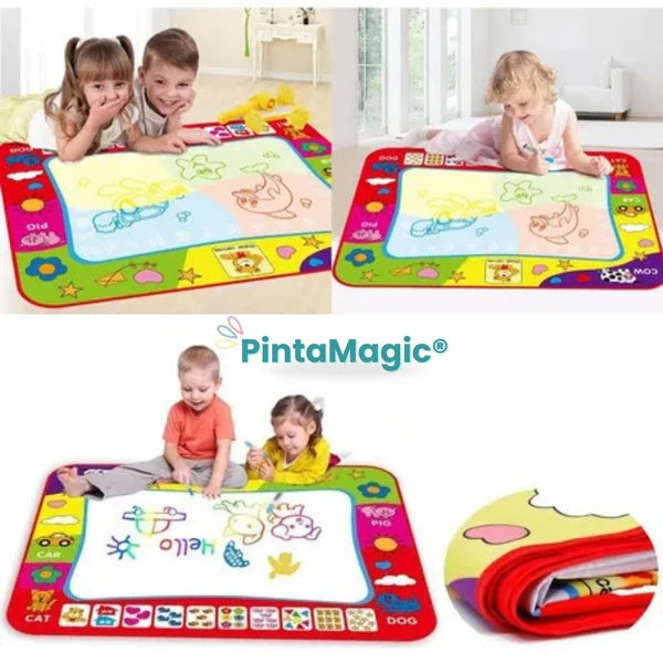 PINTAMAGIC™ cuenta con una superficie innovadora que responde solo al agua, permitiendo que los niños dibujen sin usar tinta ni pinturas. Todo desaparece al secarse, dejando el tapete listo para volver a usarlo una y otra vez. Fabricado con materiales resistentes y duraderos, es completamente libre de toxinas, lo que garantiza un juego seguro y sin desorden. Además, es plegable y portátil, perfecto para llevar la creatividad a cualquier lugar.